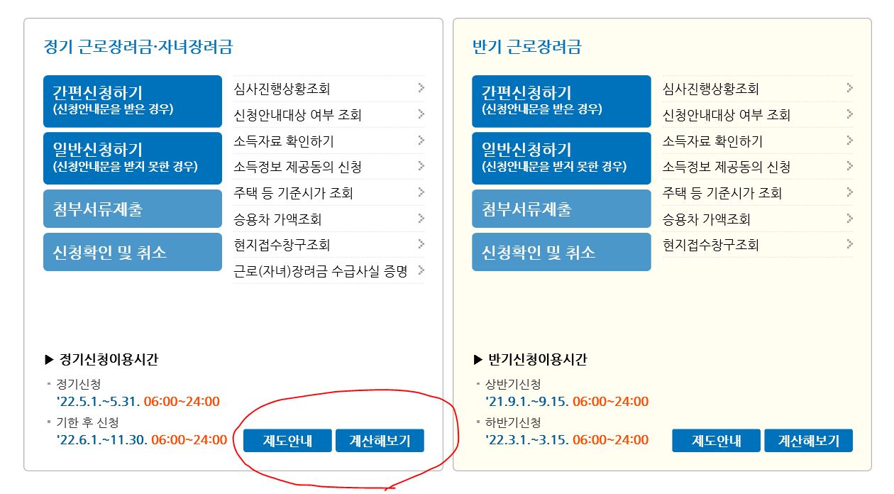 2022년 근로장려금 신청방법 / 신청대상 조회