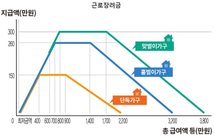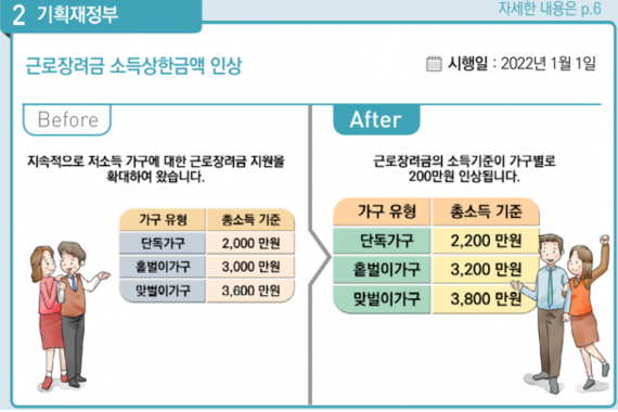 위해 근로장려금의 소득 기준이 인상되었습니다.