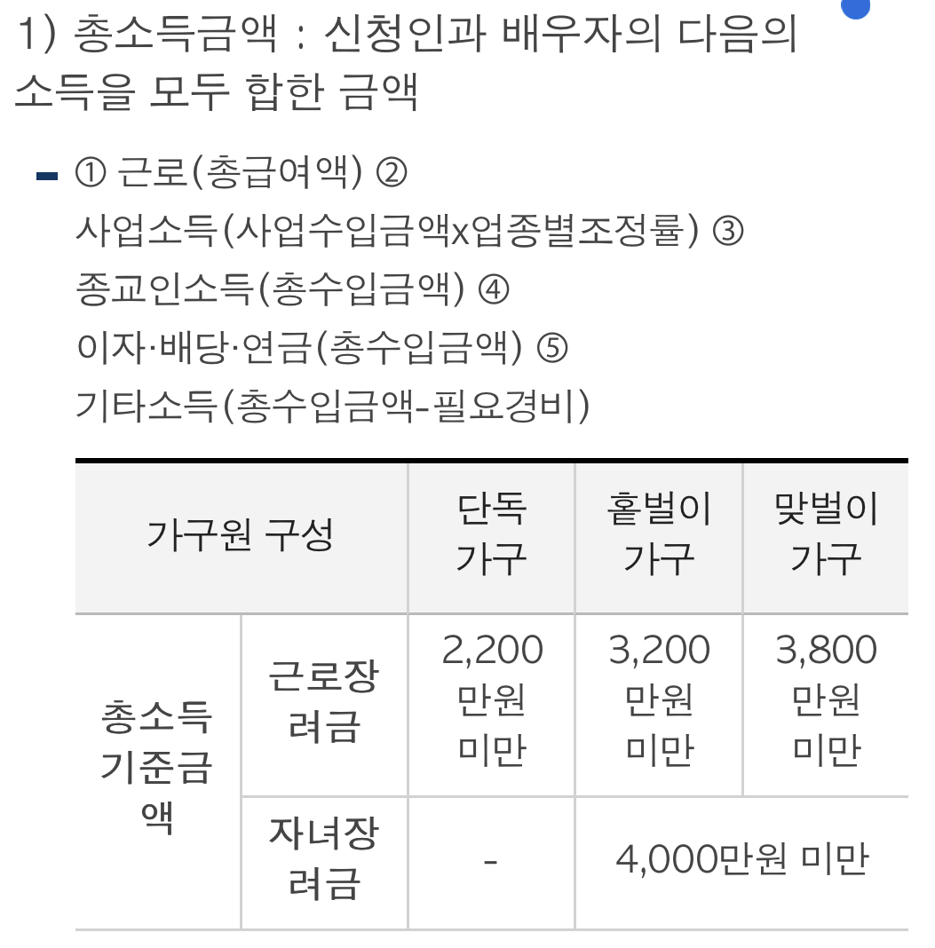부부합산 총소득금액1)이 기준금액 미만이어야 하며,